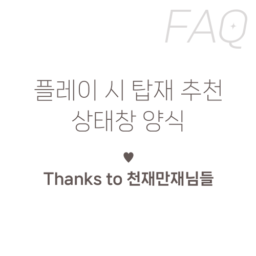 - 해당 상태창은 제작자 티팟님(CLICK!)께서 제공해 주신 상태창을 변형해서 사용하고 있습니다. 제게 상태창이라는 신세계를 알려주신 티팟님께 언제나 감사드립니다...♥